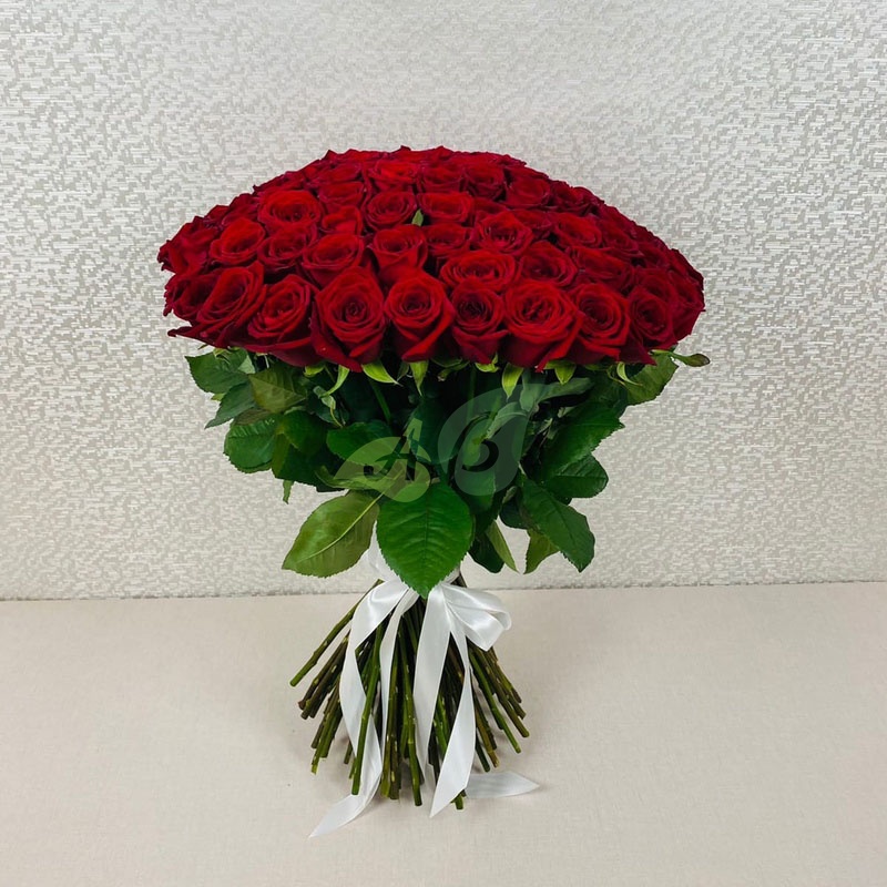 - Роза - 101 штука, цвет - красный, длина стебля - 60 см;