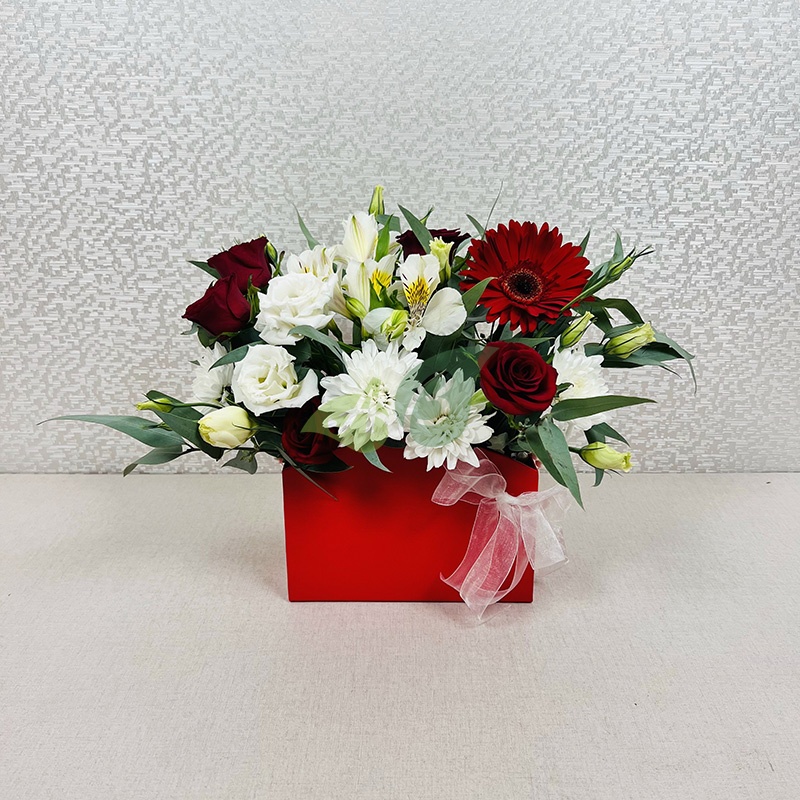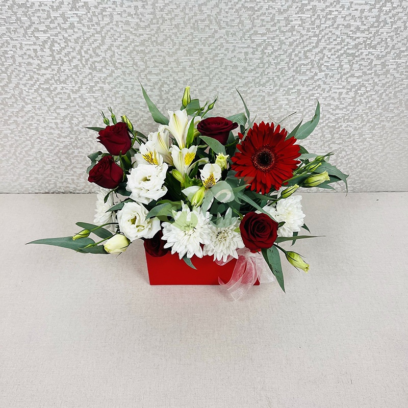 Изысканные герберы и утонченные розы в композиции в коробке – это шикарный букет, который уместно преподнести к любой дате как юной девушке, так и зрелой женщине.