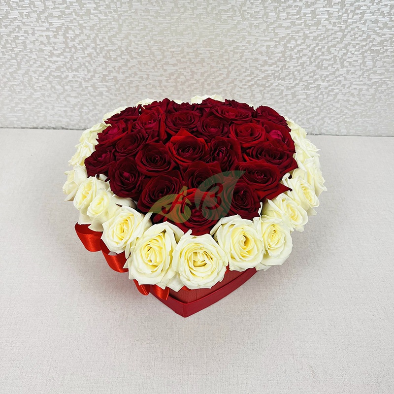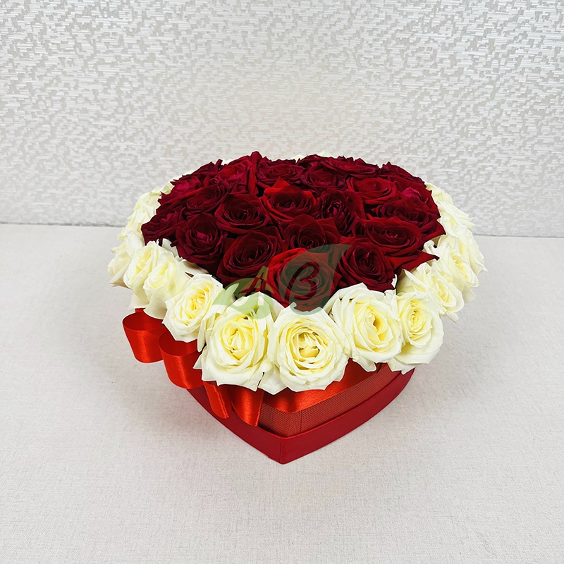 Если дарить цветы в коробке на праздник, то, несомненно, заказывать розы. Доставка этой шикарной композиции из красных и белых роз будет бесплатной по Буинску.